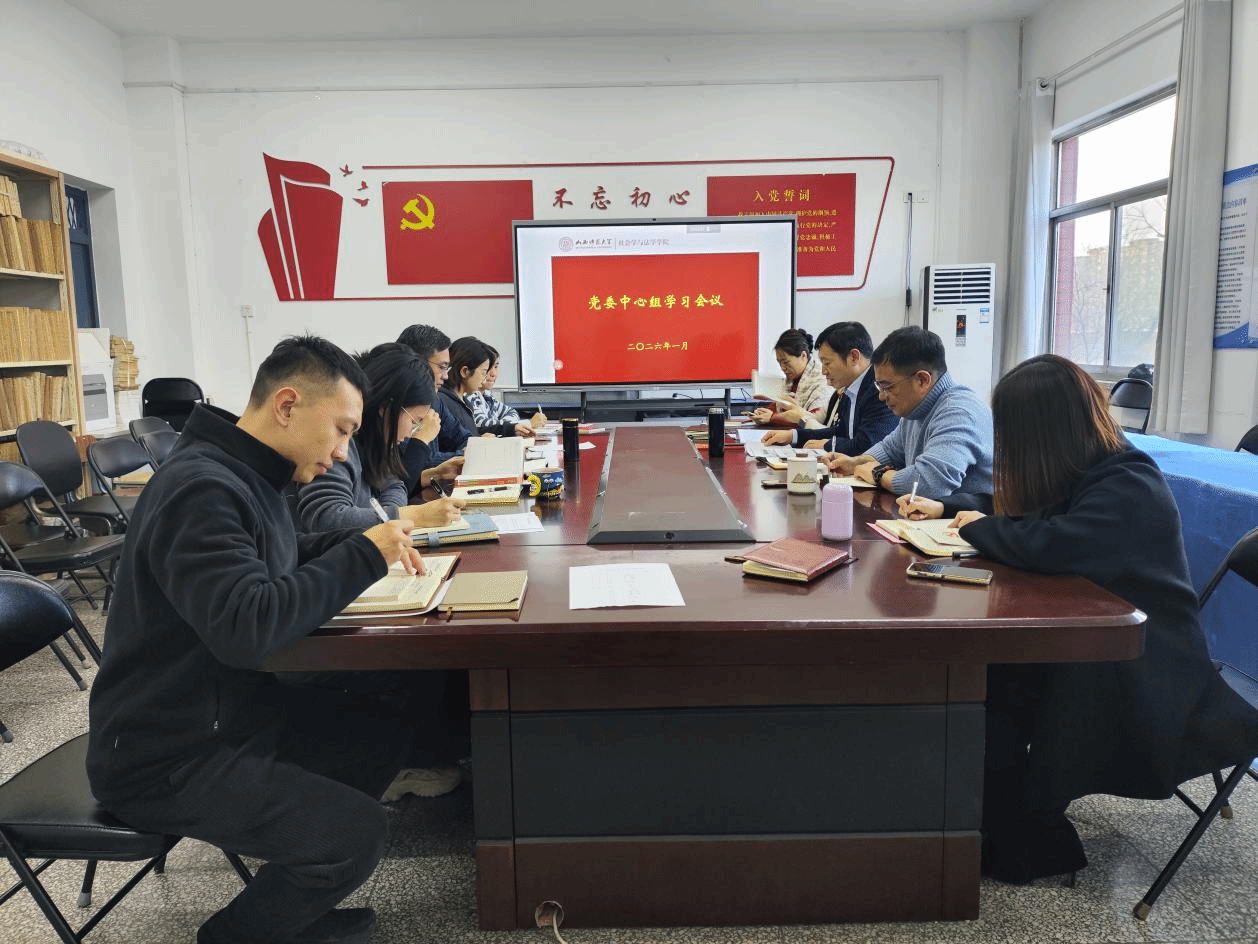 1月7日上午,社会学与法学学院党委理论学习中心组在1305会议室召开2026年度第1次学习会,院党委理论学习中心组成员参加会议,会议由院党委书记艾炬主持。
